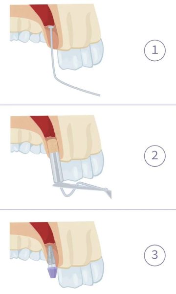 מכאן ואילך ממשיך הרופא בהשתלת שיניים סטנדרטית ומחדיר את השתל הדנטלי למקומו.